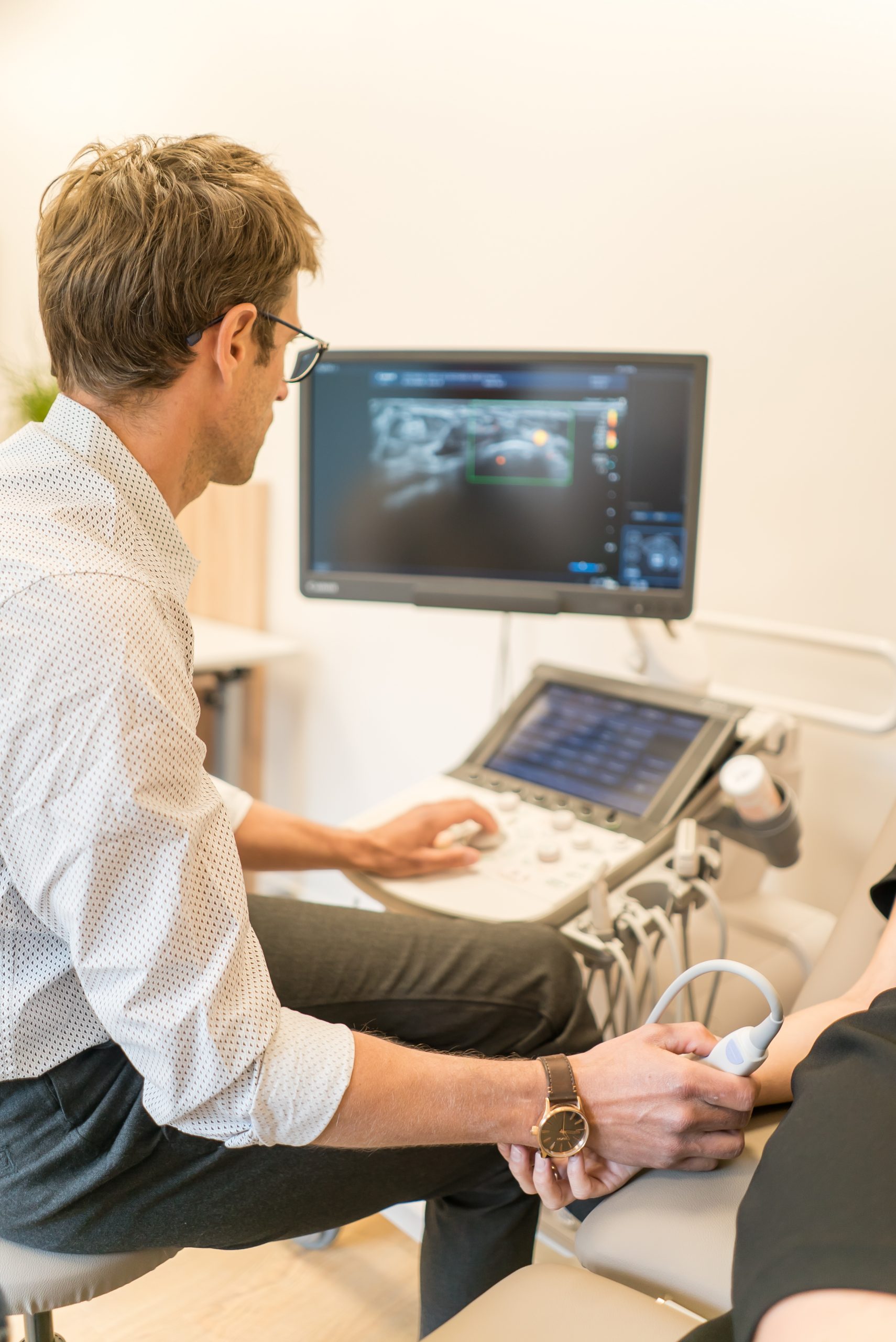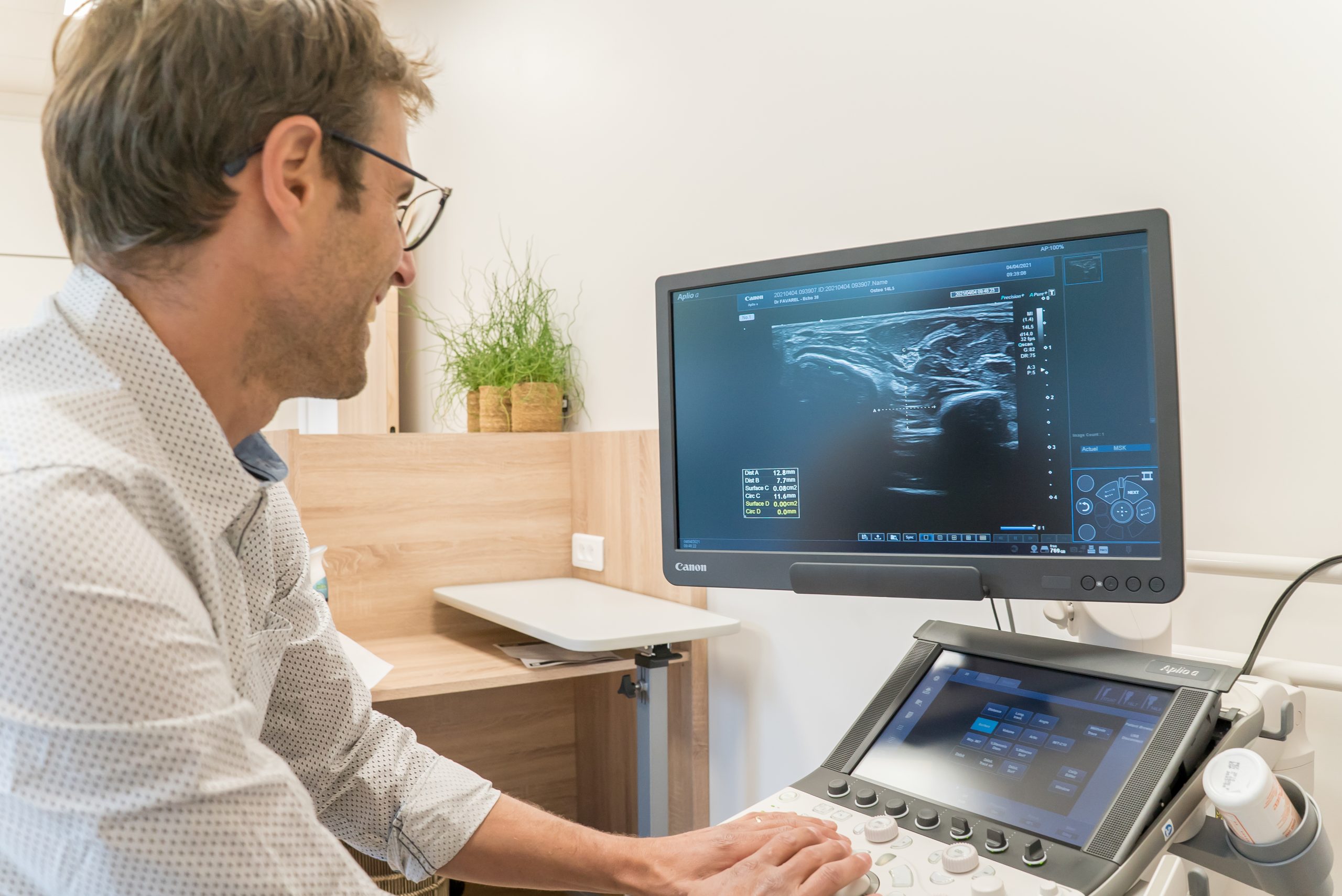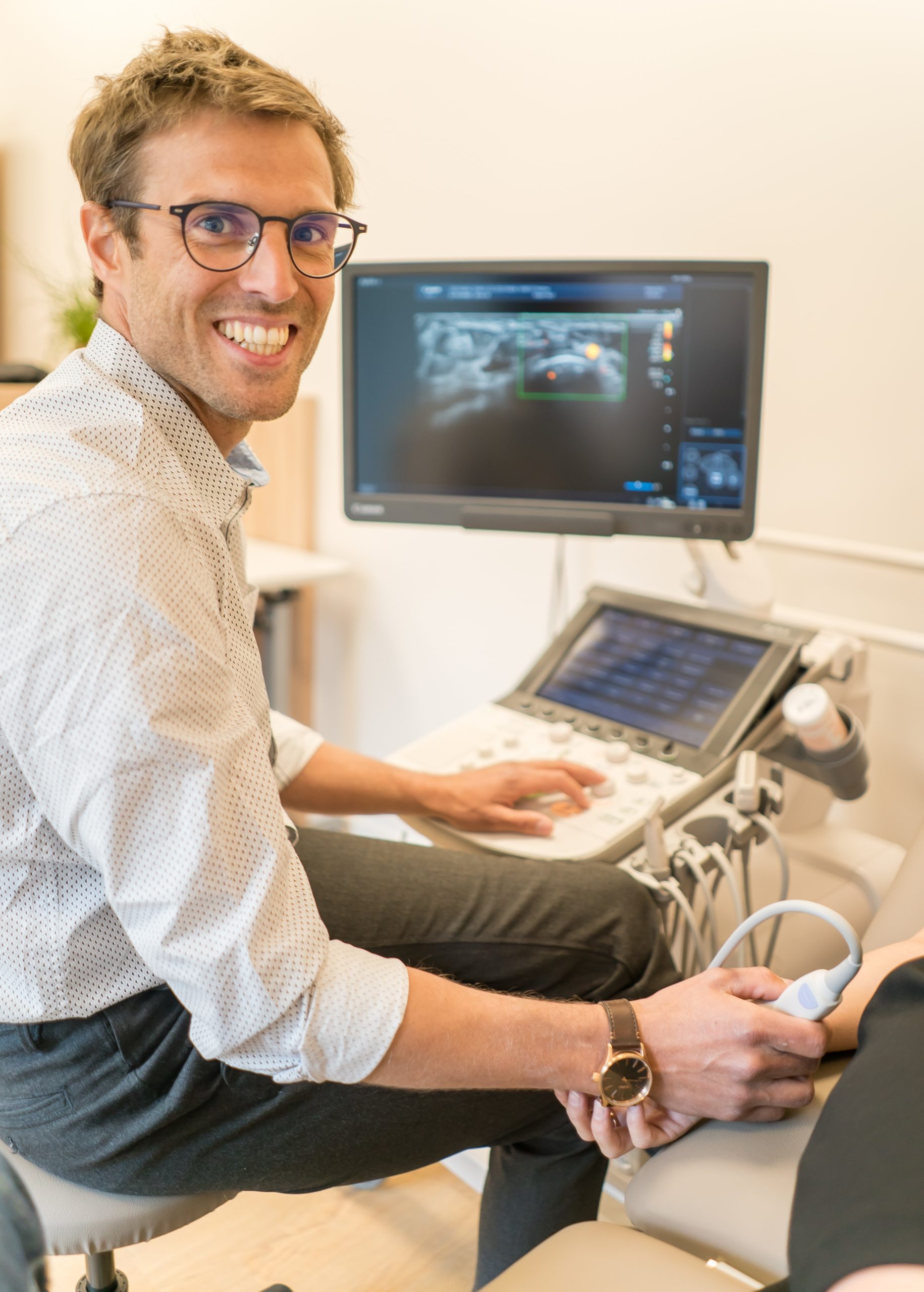 Dans un deuxième temps, sa curiosité l’a amené vers l’échographie, qui permet d’imager ce que l’on devine par l’examen clinique. Là aussi, il s’est tourné vers les meilleurs pour se former, que ce soit sur Grenoble en milieu hospitalier, mais aussi en congrès et diplômes inter-universitaires de par la France, avec les meilleurs spécialistes. Enfin, il a exercé deux ans au sein du cabinet de radiologie X Ray Grésivaudan, lui permettant d’asseoir sa pratique en échographie et en infiltration écho-guidée.
